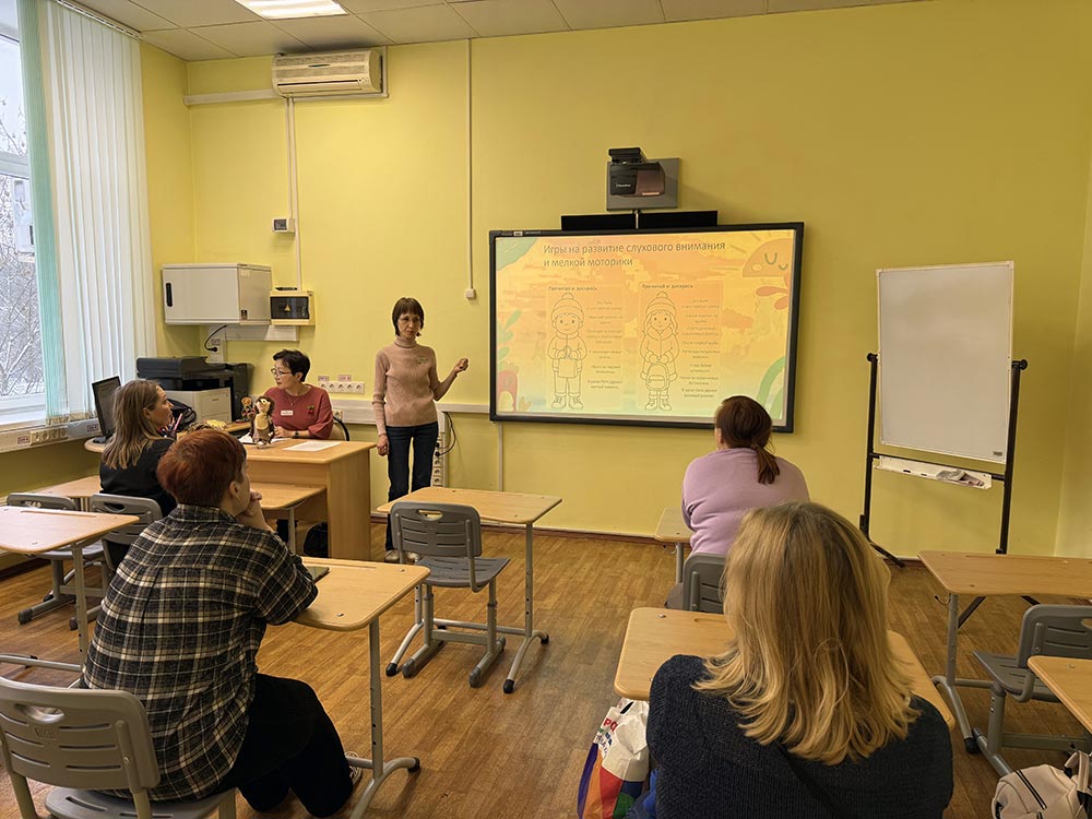 В теплой и дружеской атмосфере учитель-дефектолог Ирина Ким и учитель-логопед Надежда Антипова поделились ценными практическими рекомендациями. Они наглядно продемонстрировали, как обычные развивающие занятия можно превратить в захватывающую игру. Специалисты подчеркнули, что именно игровая форма является наиболее эффективным инструментом для комплексного развития ребенка: она стимулирует память, внимание, мышление и воображение, способствует формированию связной речи, а также раскрывает креативность, инициативность и творческий подход.