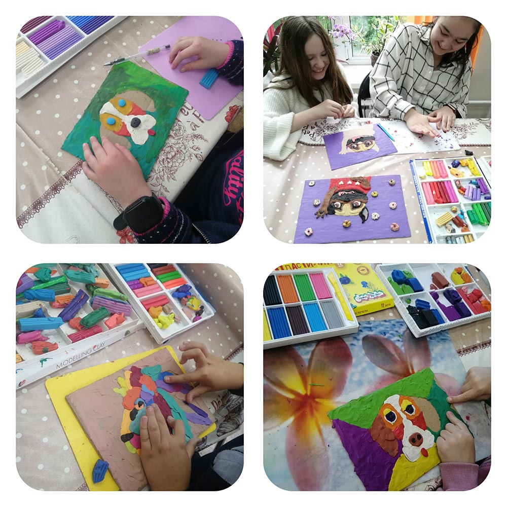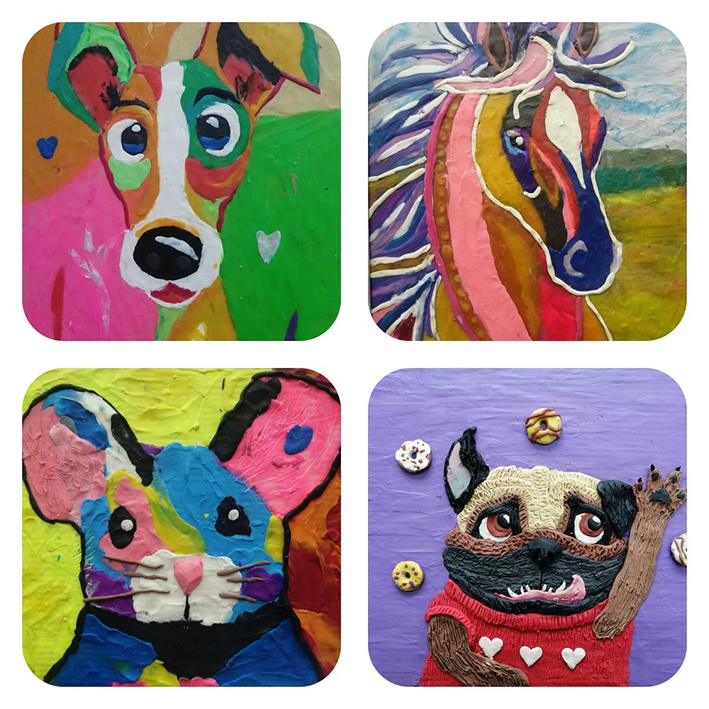 - Развитие эмпатии и эмоциональной выразительности — в процессе творческого задания (рисование любимых животных пластилином).