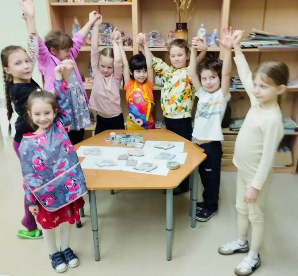 А затем — самое интересное! Глиняные фигурки, слепленные на прошлом занятии, «ожили» в цвете. Озорные Сороки-белобоки и ласковые Котики, расписанные яркими ангобами (яркое декоративное покрытие из жидкой глины), стали маленькими шедеврами. Теперь эти сувениры украсят семейные чаепития и станут теплыми подарками для всей семьи.