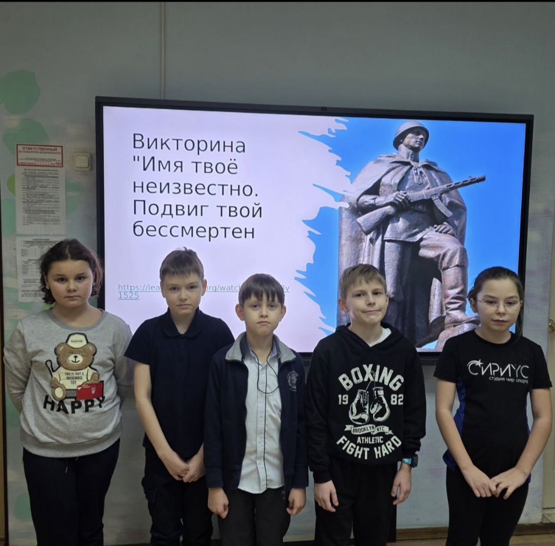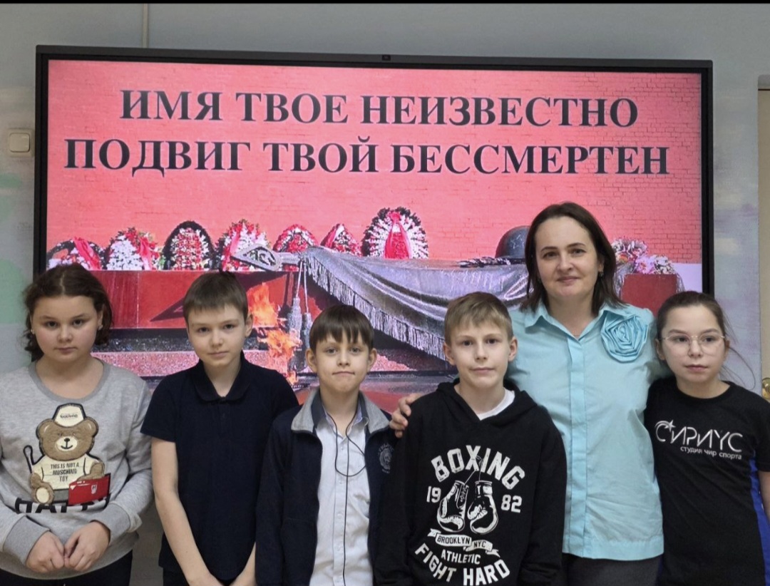 Педагог Елена Вавинова рассказала ребятам о том, что в 2014 году 3 декабря был объявлен как День неизвестного солдата.