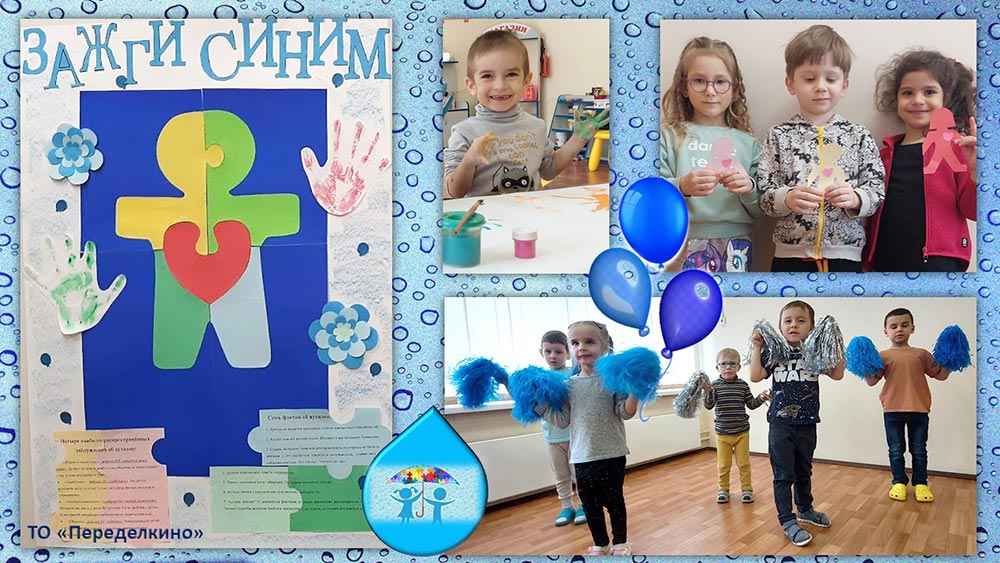 Синие футболки, синие шарики и ленточки, синие ладошки и сердечки стали символами акции «Подсвети синим», проводимой в территориальном отделении «Переделкино» в рамках месяца распространения информации о проблеме аутизма.