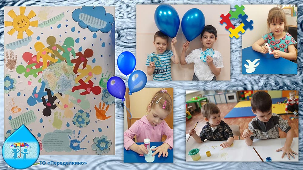 В течение недели педагоги играли с детьми в различные игры, рассказывали о различных способах проявить доброту и заботу, собирали коллажи и пазлы с синими символами, говорили о «людях-дождя». Ребята с интересом посмотрели видеоролик «Дети дождя среди нас», где на доступном языке была представлена информация об особенностях детей с аутизмом, как с ними общаться, играть, дружить. Воспитанники групп кратковременного пребывания посмотрели мультфильм «Голубой щенок» и обсудили тему доброты, дружбы, взаимопонимания. Педагоги учили детей готовности помогать и протягивать руку помощи.
