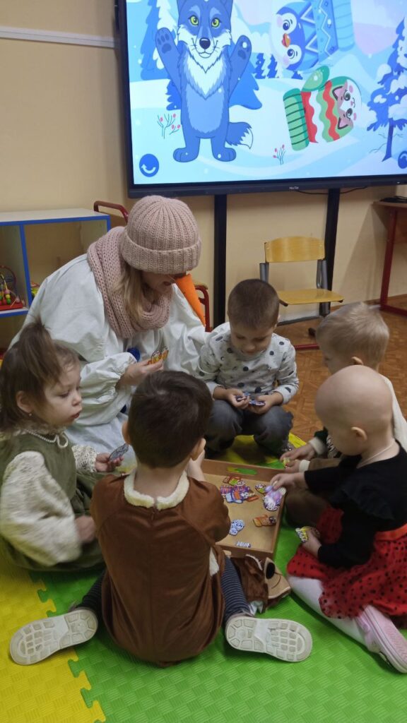 Зимний день в территориальном отделении «Переделкино» наполнился настоящим волшебством. Здесь не просто читали или смотрели сказку – в нее играли, ее проживали! 19 декабря педагоги Светлана Белоусова и Мария Кушнер подарили детям интерактивное путешествие по доброй зимней сказке Евгения Чарушина «Рукавичка».