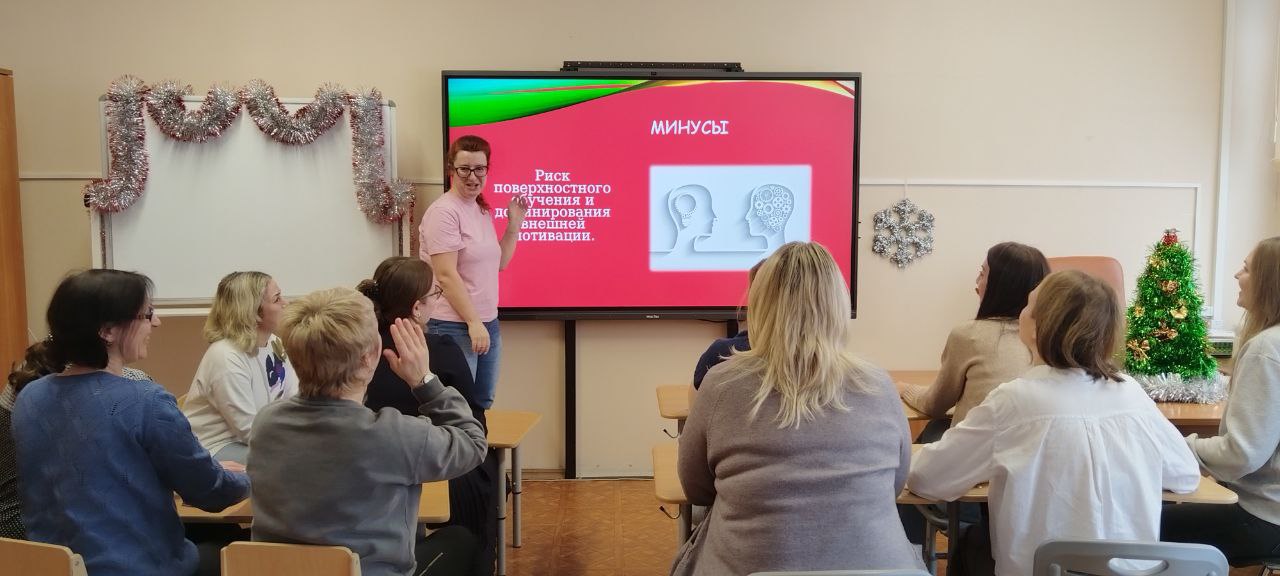 На встрече педагоги узнали о плюсах и минусах интеграции игровых элементов в традиционные учебные методики, которые надо учитывать в своей работе.