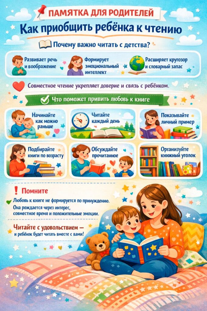В завершение встречи родители получили специально разработанные памятки «Как приобщить ребенка к чтению». В этих материалах были собраны эффективные рекомендации по подбору литературы, организации совместного чтения, проведению обсуждений прочитанного и развитию творческих способностей на основе художественных произведений. Родительская гостиная прошла в теплой и дружественной атмосфере, оставив у всех участников чувство вдохновения и уверенности в том, что любовь к чтению можно привить каждому ребенку.