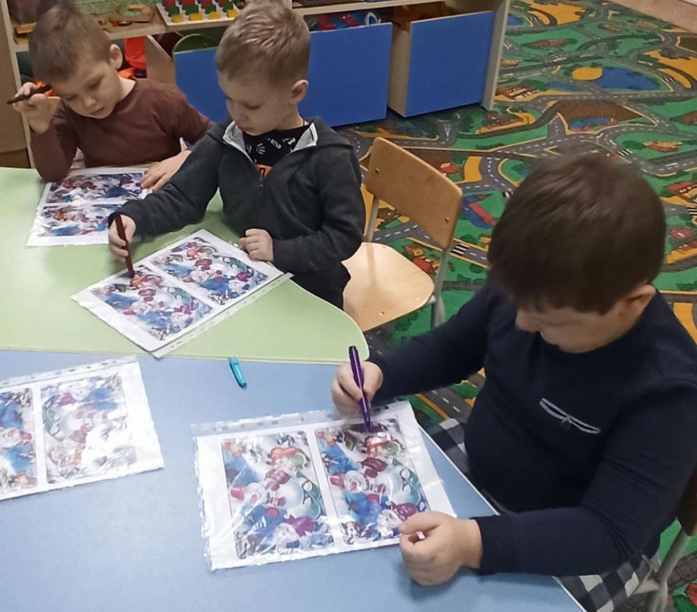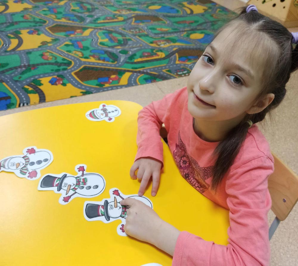 Особый интерес у ребят вызвало задание «Дорожка для снеговика», направленное на развитие пространственного мышления и мелкой моторики. Апогеем творческого процесса стало украшение каждым ребёнком своего бумажного снеговика. Дети с удовольствием добавляли своим героям шарфики, варежки и пуговицы, создавая уникальные образы.