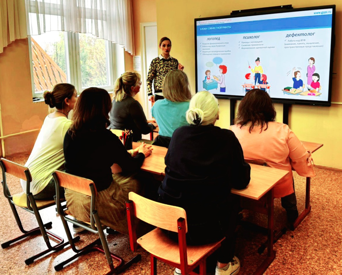 В территориальном отделении «Южное Бутово» учитель-логопед Любовь Юскова провела семинар для педагогов на тему: «Единый старт: пишем без ошибок. Советы логопеда для психолога и дефектолога».