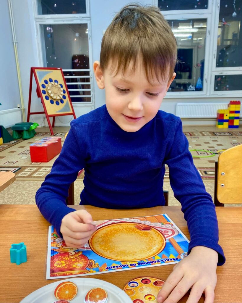 Кульминацией занятия стало творческое задание — создание куклы-Масленицы и украшение собственного неповторимого блинчика. Каждый ребенок смог проявить фантазию и создать маленький шедевр.